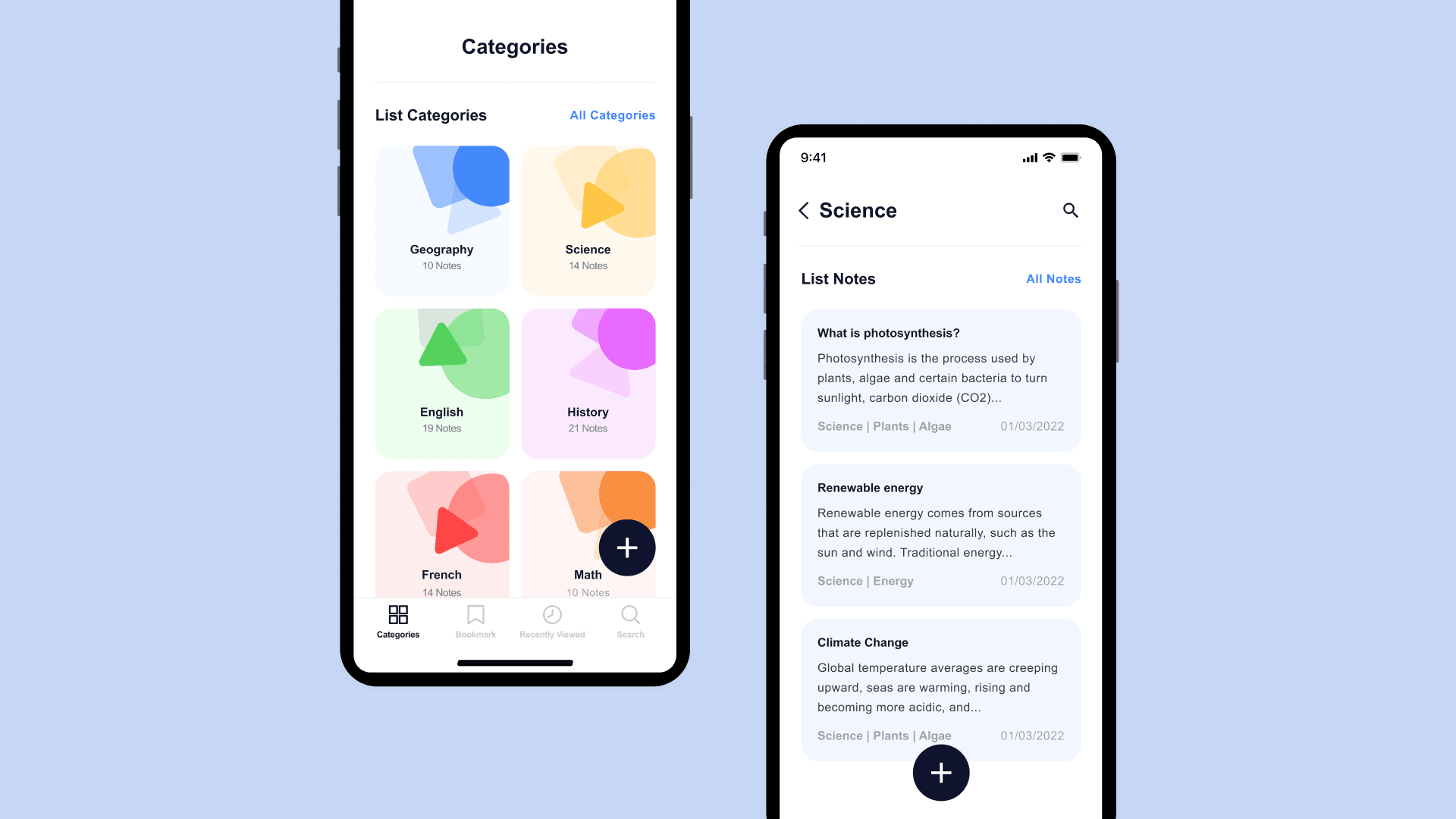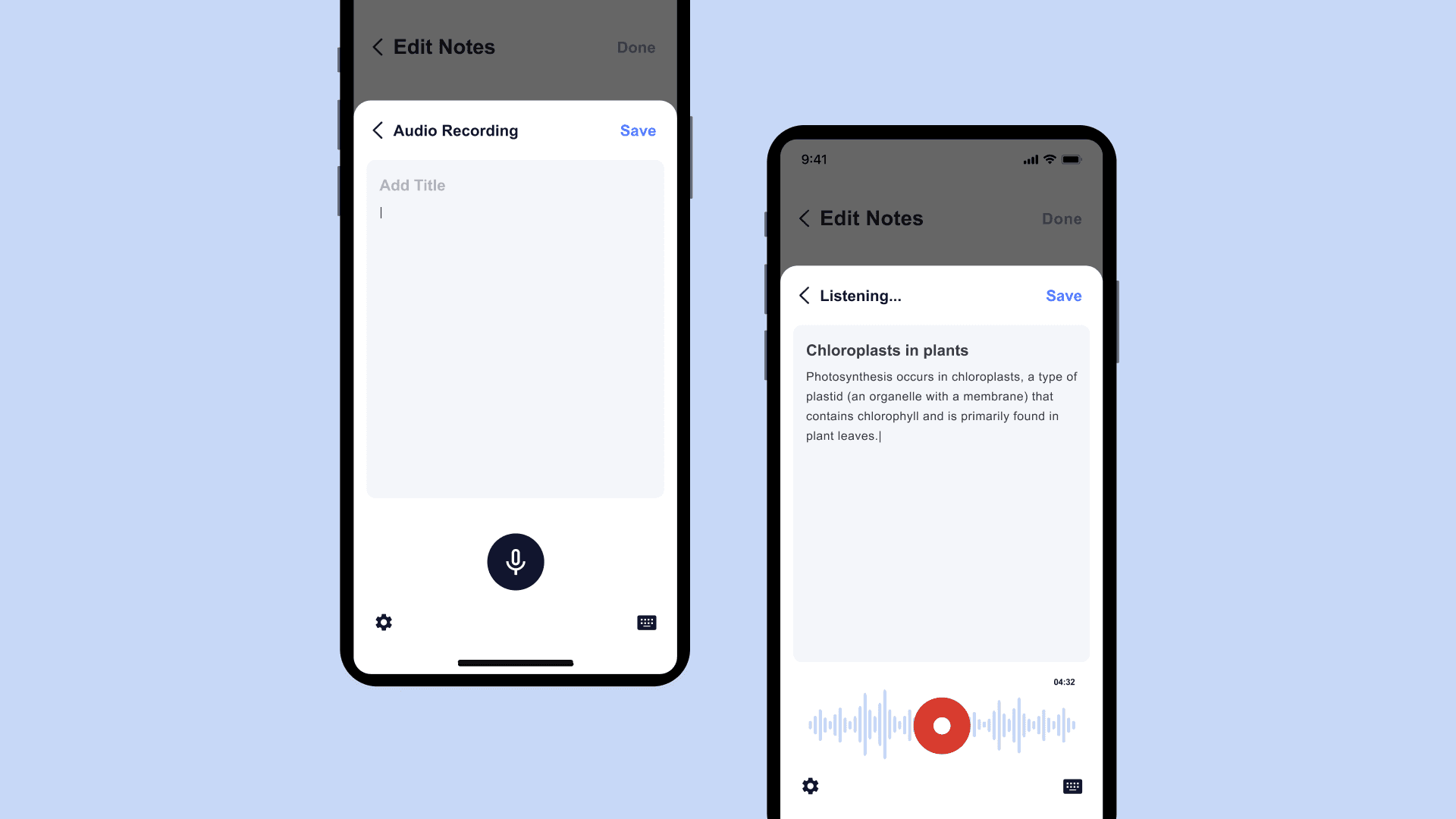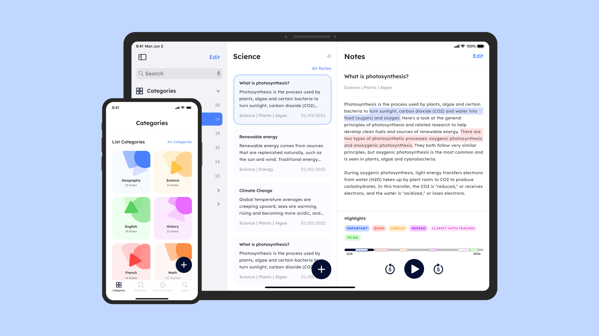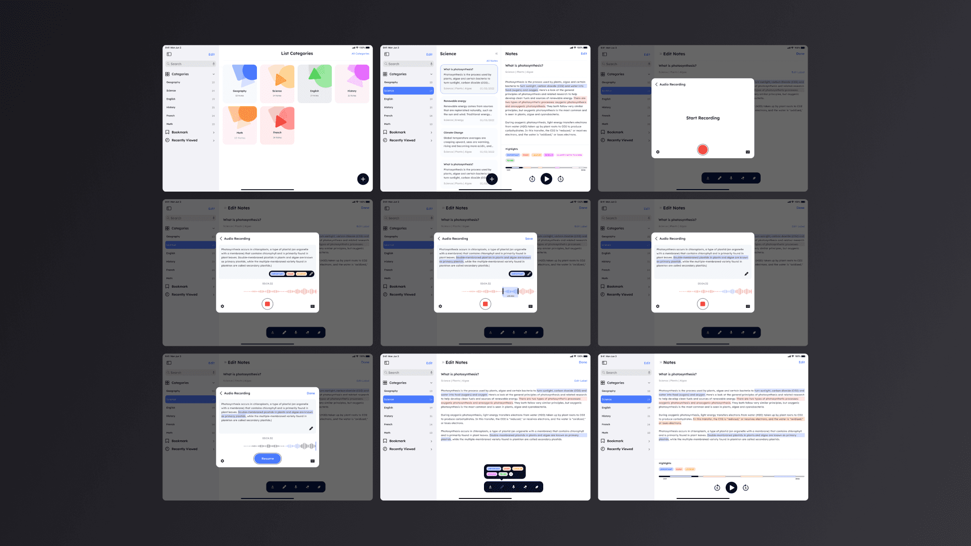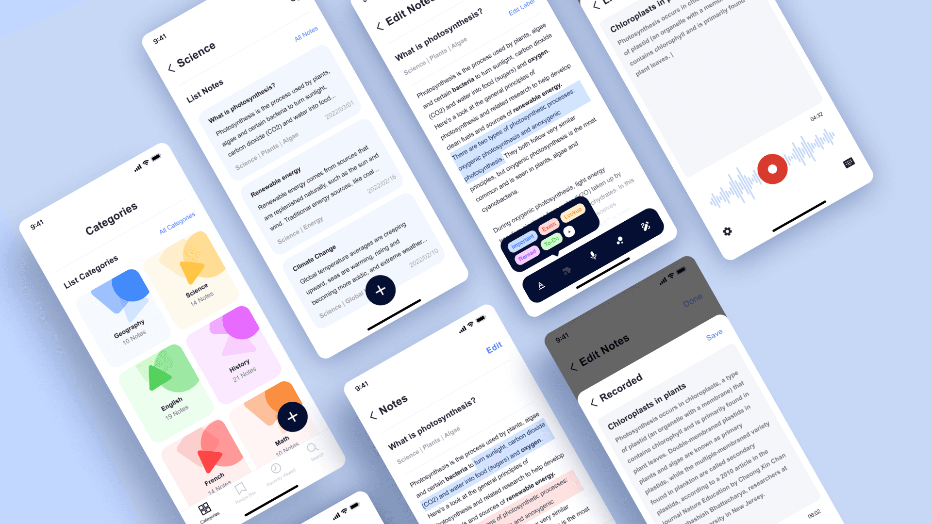 Dyslexic students are often untidy with notes, the application helps students organize sets of audio notes based of categories of subjects taught at school.