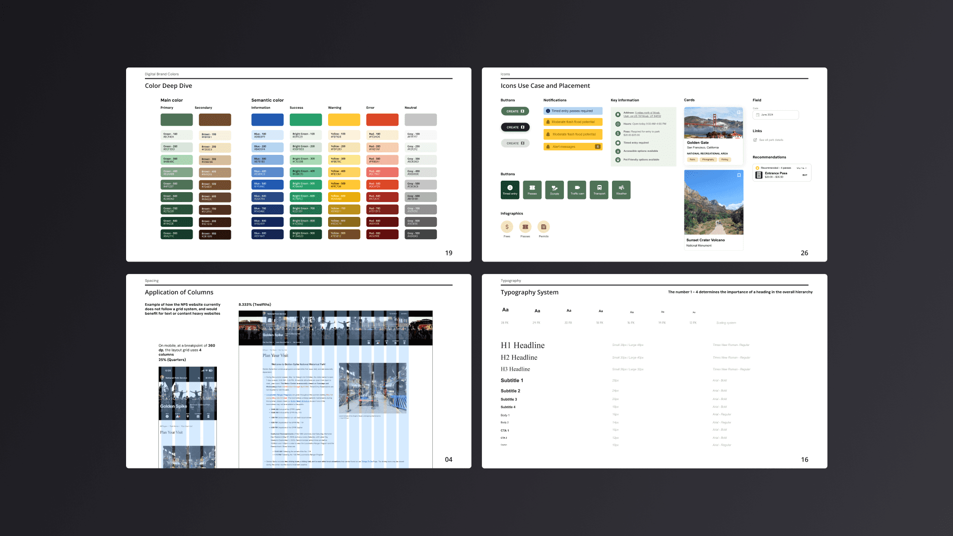 I interviewed 30+ park visitors, rangers, and content managers to understand trip planning behaviors in collaboration with my team. Our key areas of focus: 1. How users searched for parks and planned trips 2. Pain points in navigation, offline access, and information retrieval 3. Opportunities to enhance engagement before, during, and after the visit