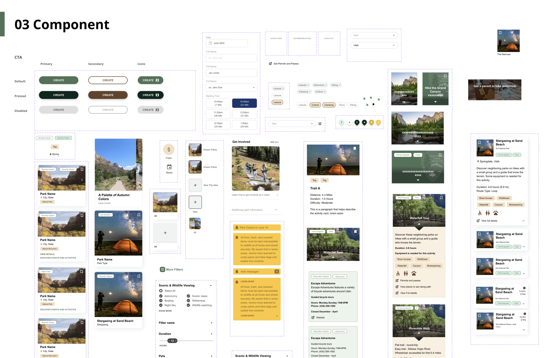 Visitors had trouble setting specific trip criteria when searching for a national park. Information such as entry costs, directions, and logistics were often buried in lengthy or scattered pages. How might we give visitors an easier and friendlier way to search, filter, and quickly access relevant park information? How might we help them get the information they need to feel prepared and enthusiastic about their visits?